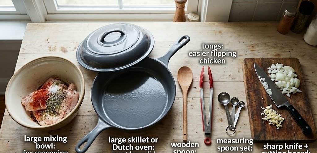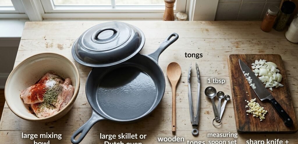 • 1 Large skillet or Dutch oven with lid Must be wide enough for browning